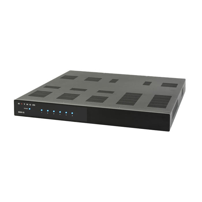 Anthem MDX12 | Amplificateur 12 canaux - 6 zones - Puissance de sortie de 1000 watts et plus - 6 Entrées analogiques + 2 entrées assignables - 2x paires RCA (bus gauche/droite) Sorties - Refroidissement par ventilateur - Noir