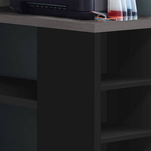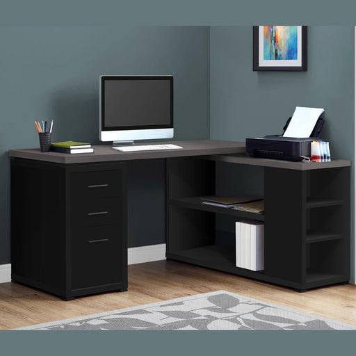 Monarch Specialties I 7430 | Meuble d'ordinateur - En coin - Conception en L - Orientation gauche ou droite - Avec tiroirs - Dessus gris - Noir