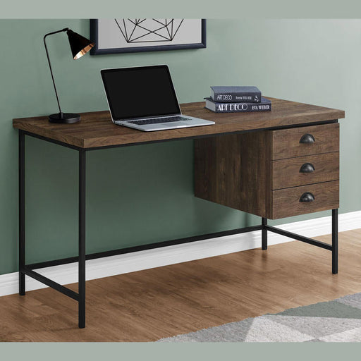 Monarch Specialties I 7485 | Meuble d'ordinateur - 55" - Spacieux dessus - 3 tiroirs - Base en Métal noir - Fini imitation de bois brun