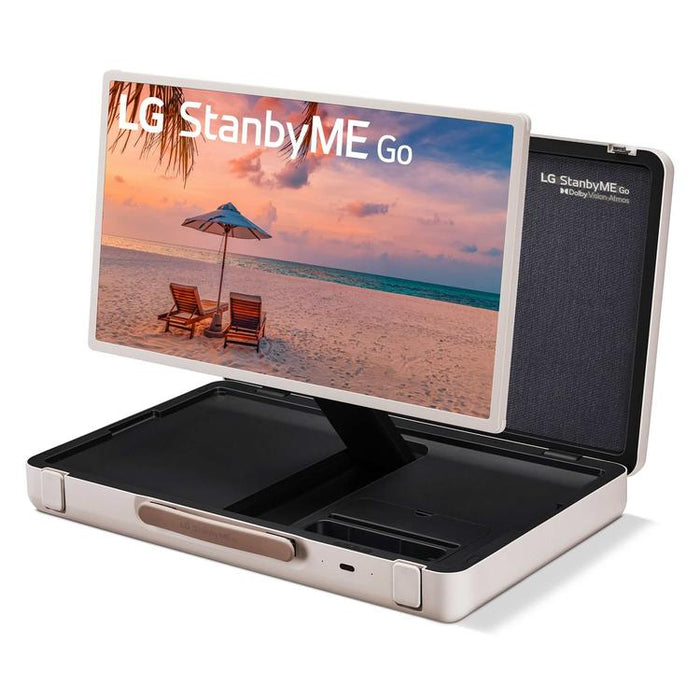 Le LG StanbyME GO 27" : votre cinéma portable nouvelle génération. Écran tactile intelligent, batterie 3h, Dolby Vision et Atmos intégré. Un téléviseur mallette qui révolutionne le divertissement nomade avec son processeur a7 IA, réglable à l'infini et prête à vous suivre partout.