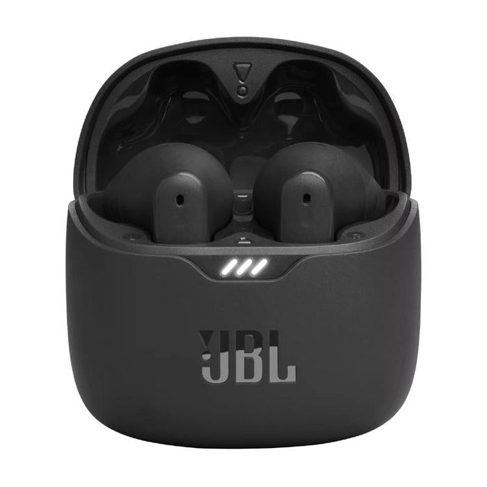 JBLTFLEXBLKAM | In-ear headphones - 100% Wireless - Bluetooth - Up to 32 hours battery life - Active noise reduction with Smart Ambient - Stereo and hands-free calling - 4 microphones - TalkThru multifunction button - Water and perspiration resistant - Ergonomic design - Stick-open design - Touch control - Black