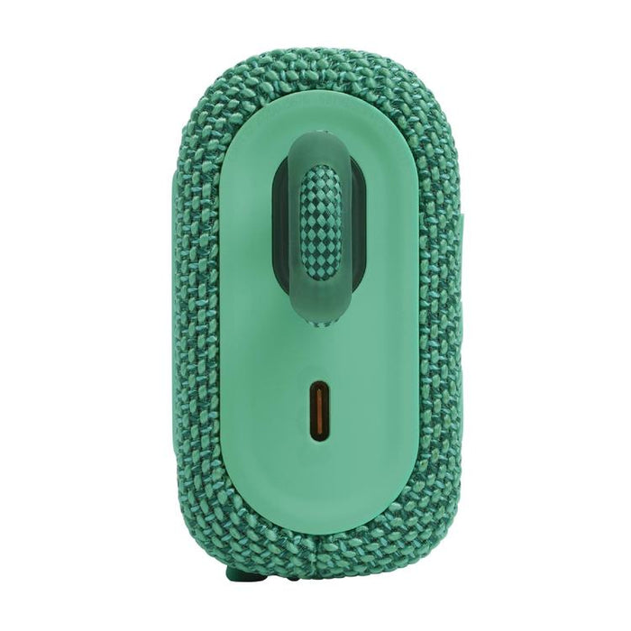 JBLGO3ECOGRN | Ultra-portable Mini Speaker - Bluetooth - Up to 5 hours of autonomy - Original JBL Pro Sound - IP67 waterproof - dustproof - Integrated portability loop - Speaker grille made of 100% recycled fabric - Recycled materials and packaging - Green